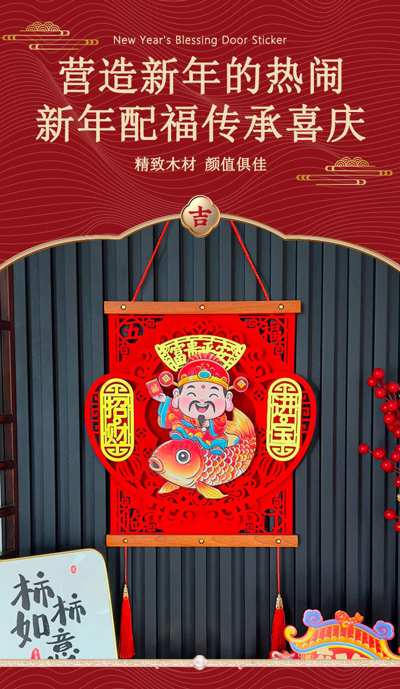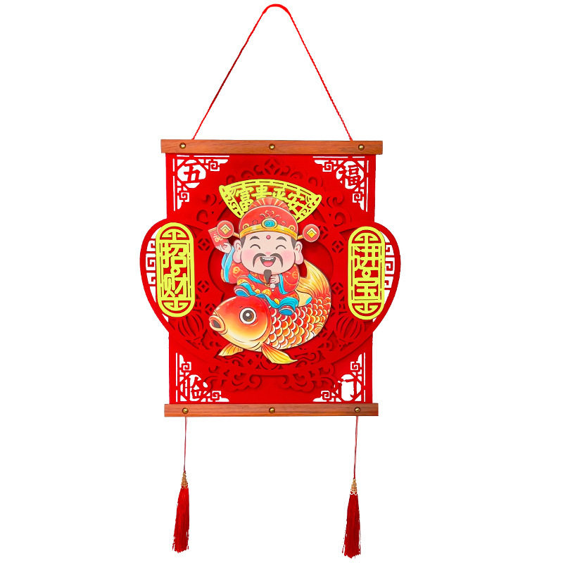 Новый 2025 год, качающий головой Бог богатства, чтобы привлечь богатство и сокровища, Фестиваль весны, кулон удачи из красного дерева, вход в гостиную, аксессуары для дома
