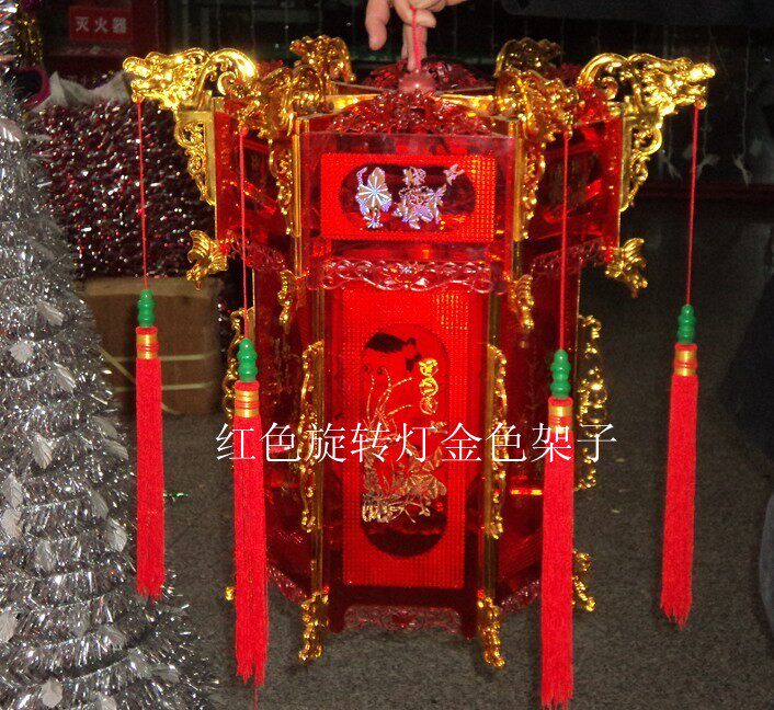 Пластиковая шестиугольная антикварная светодиодная лента, мотор, крутящийся красный золотой фонарь