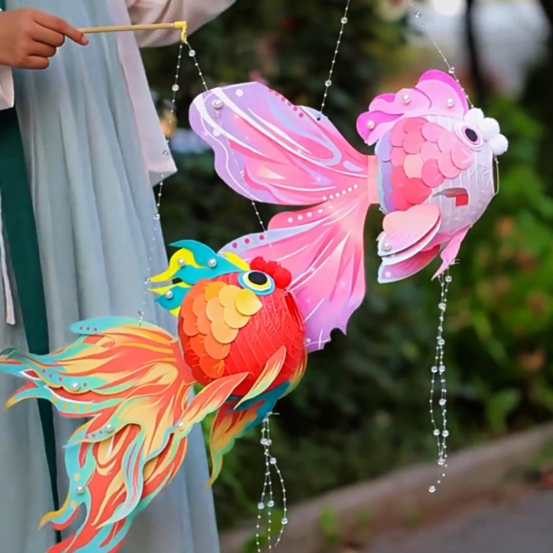 Новогодний фестиваль Кои Светящийся цветок Фонарь Весенний фестиваль Новогодний детский ручной работы DIY Материал Портативный фонарь с золотой рыбкой