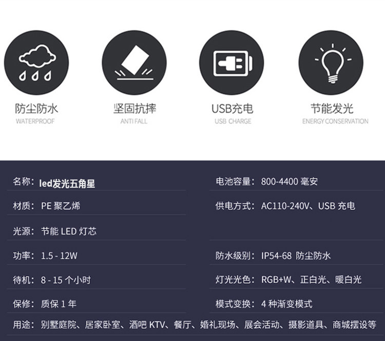 Четырех -летний старый магазин более 20 цветов светодиодные легкие пентаграмма на открытом воздухе.