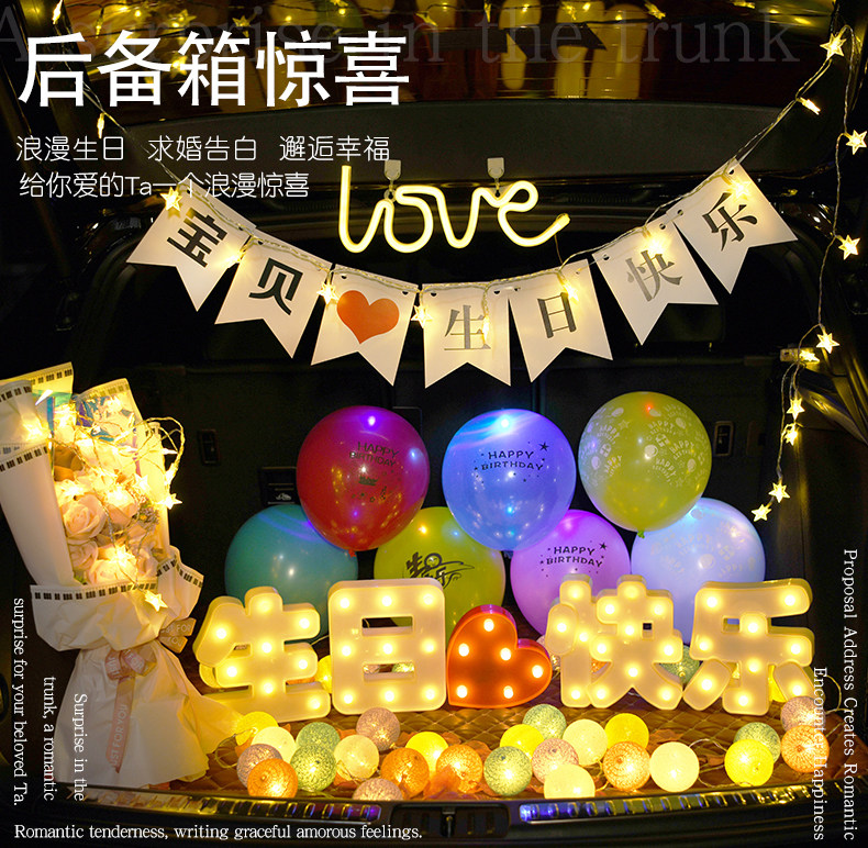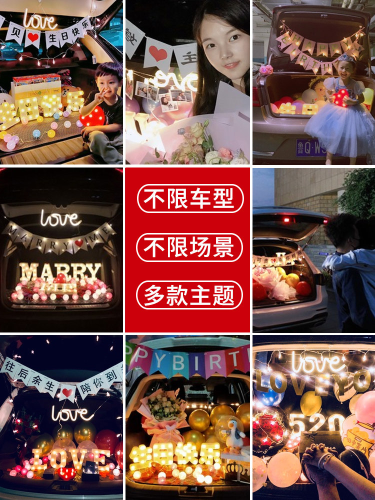 Автомобильный багажник неожиданный автомобиль задней коробки романтическое предложение макет