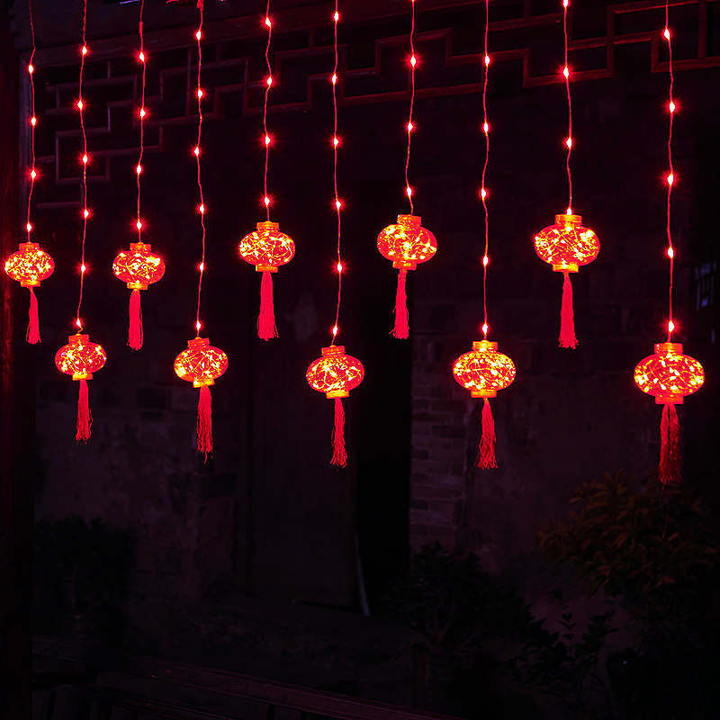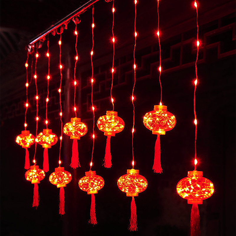 2023 новогодние декоративные световые фонари, наполненные звездными красными фонарями, висящими домой на Новый год.