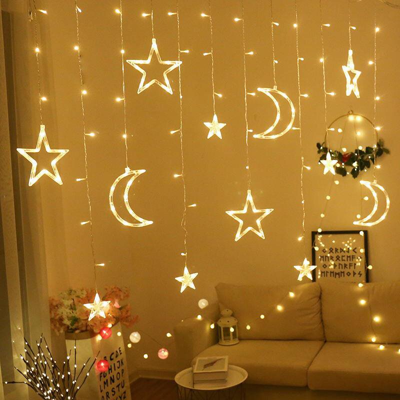 Светодиодные звездные струны творческая сеть красная цветная световые светильники, полные звездной спальни, легкие романтические декоративные легкие шторы