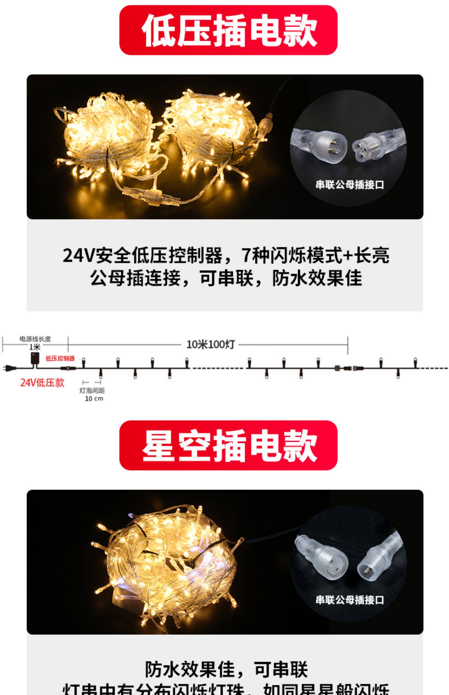 - 10 метров 100 ламп-24V низкий давление