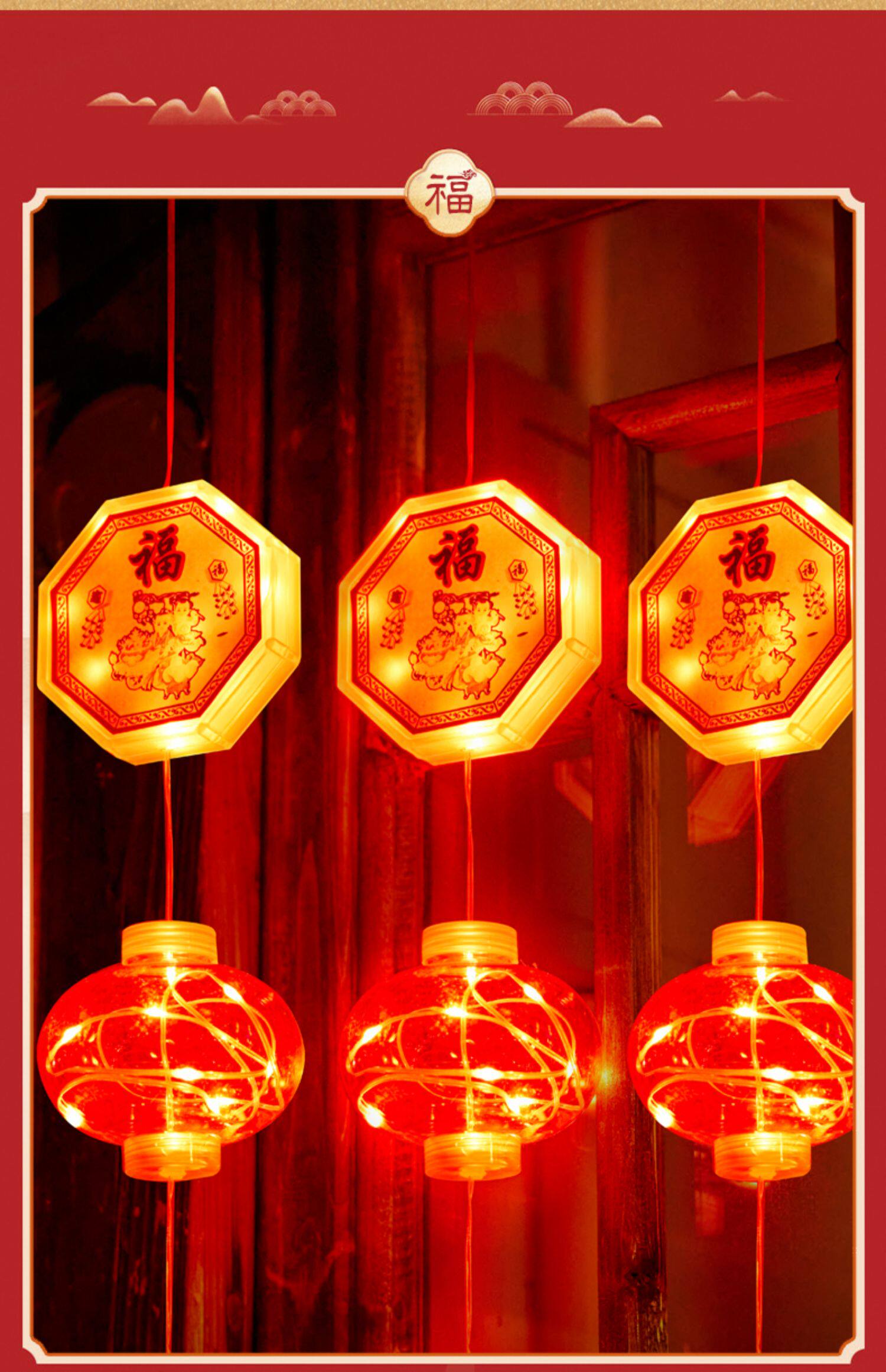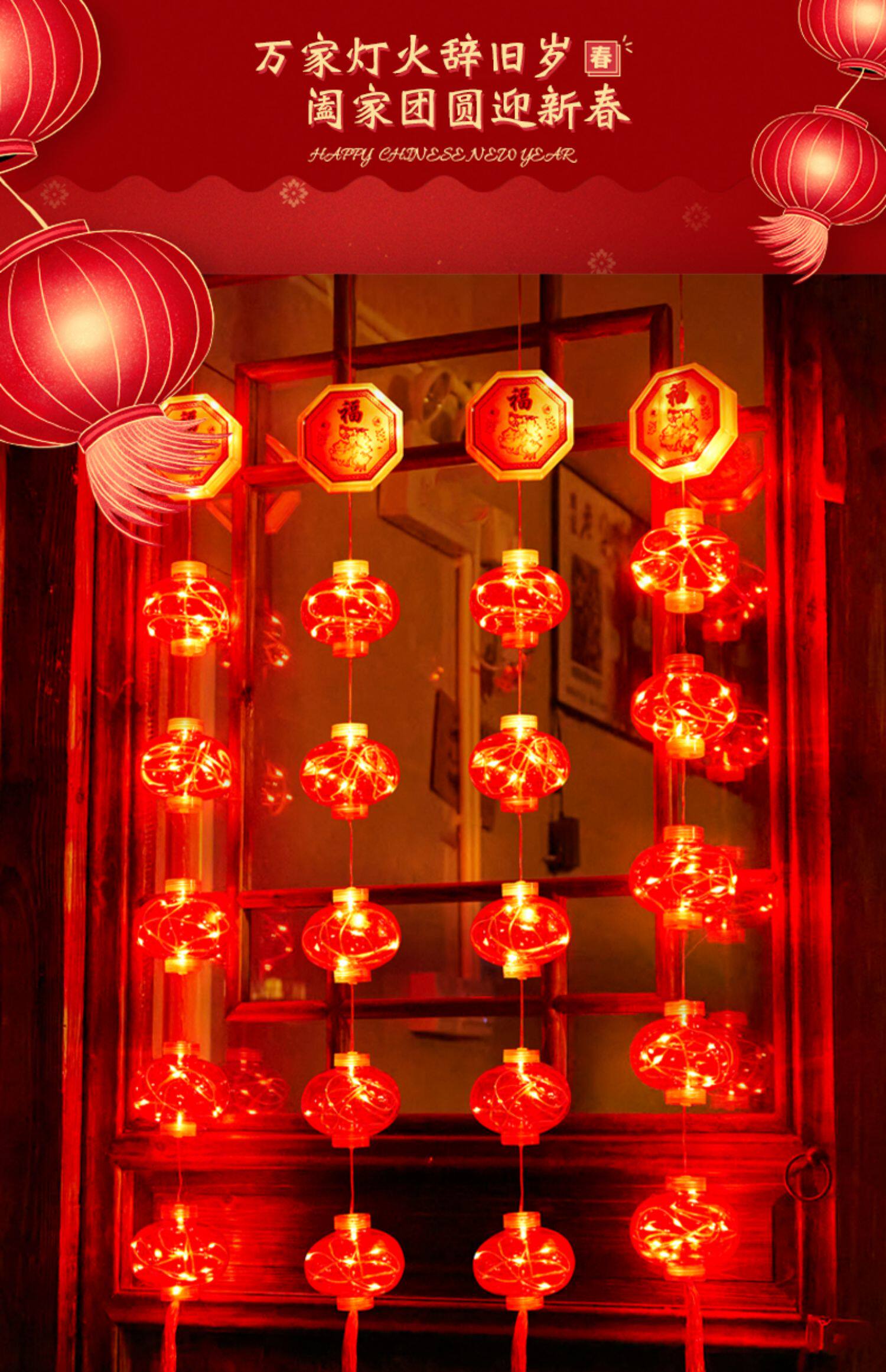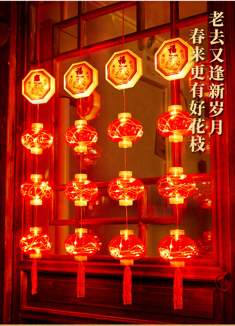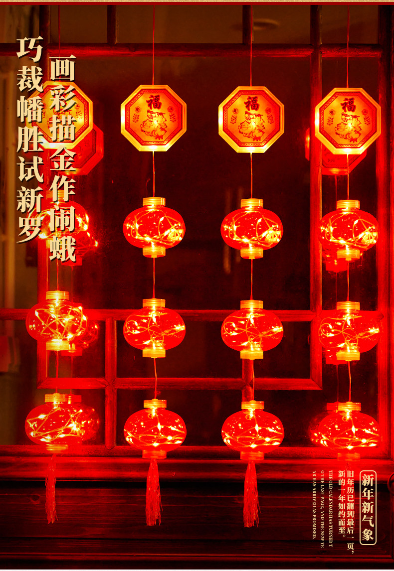 Новогодние украшения 2024 Весеннее фестиваль атмосфера Цвет световой фонари Большие красные фонаря Новый год Новая годовая атмосфера