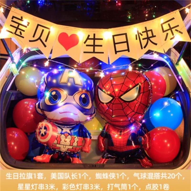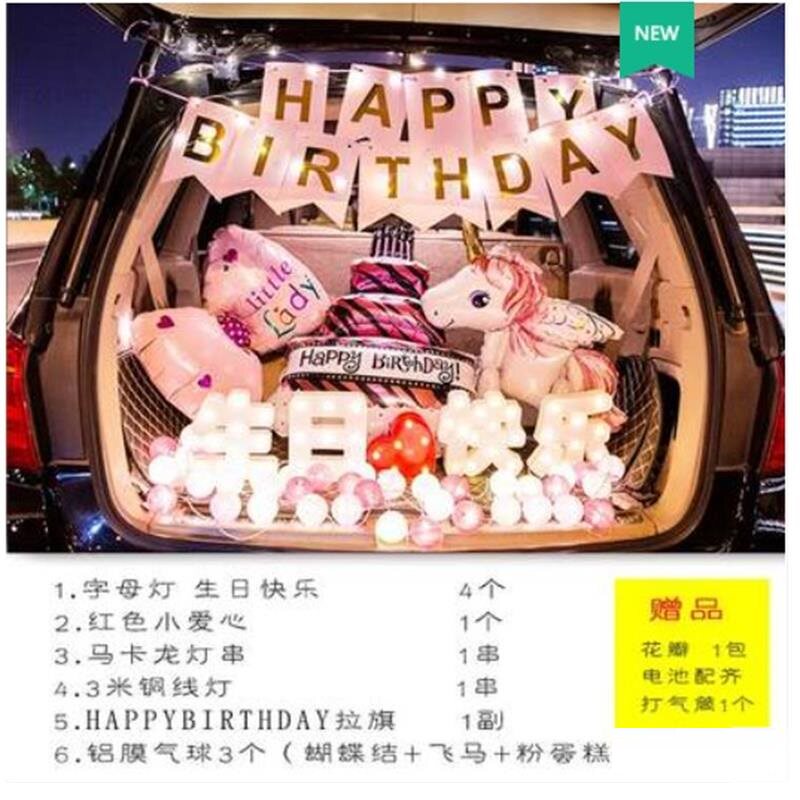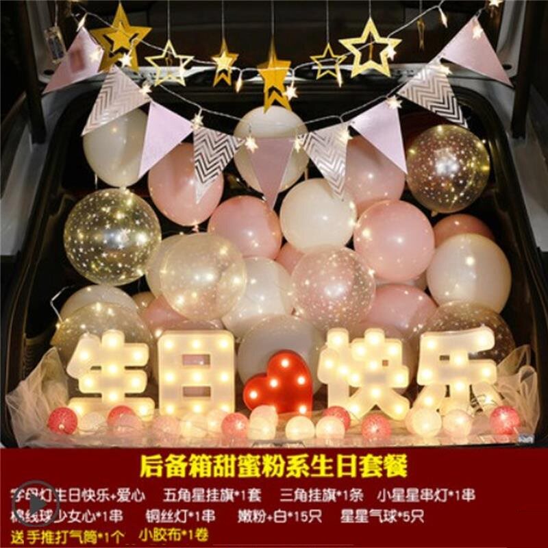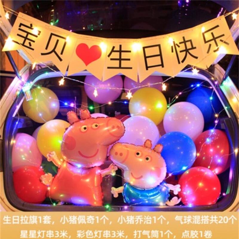 Сундук на день рождения, мальчик устраивает декоративный реквизит для дочери, мультяшные воздушные шары, светящиеся цифровые огни, воздушные шары с любовью