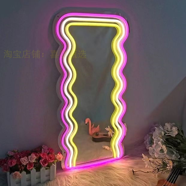 Творческое светящее зеркало зеркало детская комната любовь зеркало неоново -светло -романтическое романтическое милое зеркальное зеркало Атмосфера свет