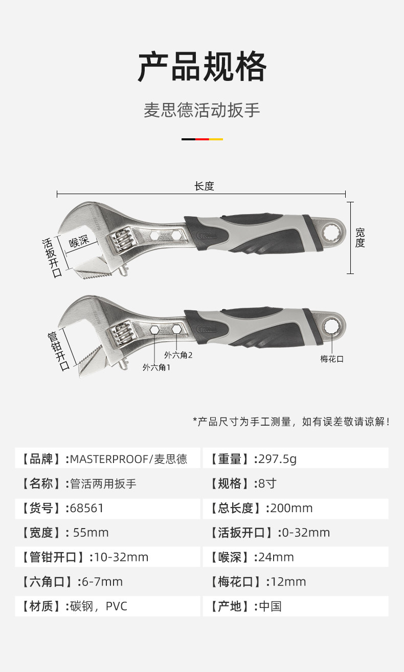 | Цвет: | 68541 6-дюймовый подвижный ключ + перчатки, 68542 8-дюймовый подвижный ключ + перчатки, 68543 10-дюймовый подвижный ключ + перчатки, 68544 12-дюймовый подвижный ключ + перчатки, 68561 8-дюймовый два подвижных ключевых ключе |