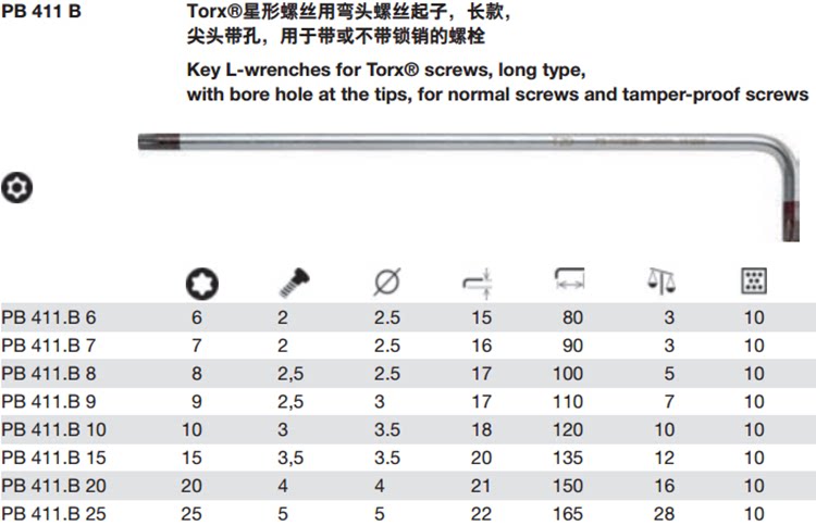 Швейцарские швейцарские инструменты PB 411 B расширили внутреннюю шестиугольную серию в беглой звезде