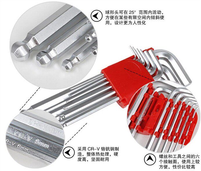 Шестиугольный гаечный ключ, шестиугольная шаровая головка, шестиугольные перчатки, длинный комплект, 9 шт