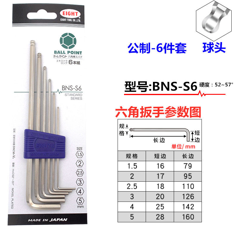 Японский импортный шестиугольный гаечный ключ, длинная шаровая головка, шестиугольная ключница, закаленный комплект, отвертка