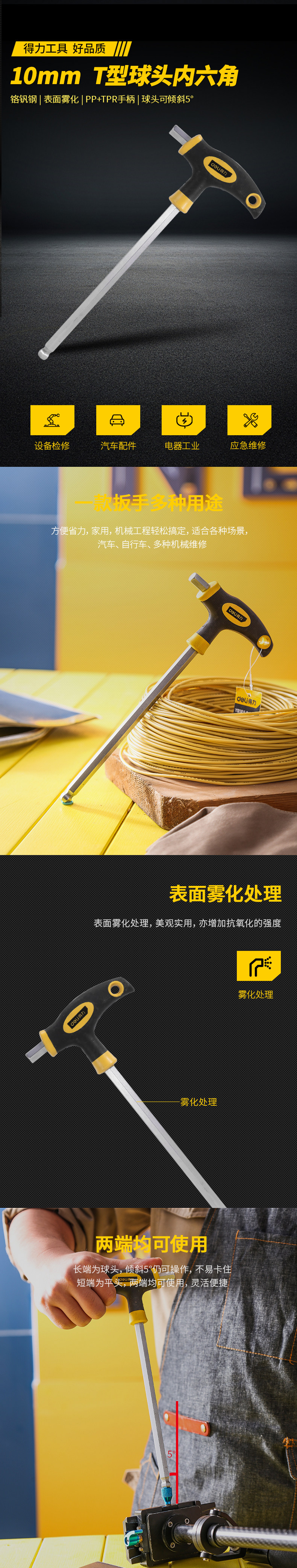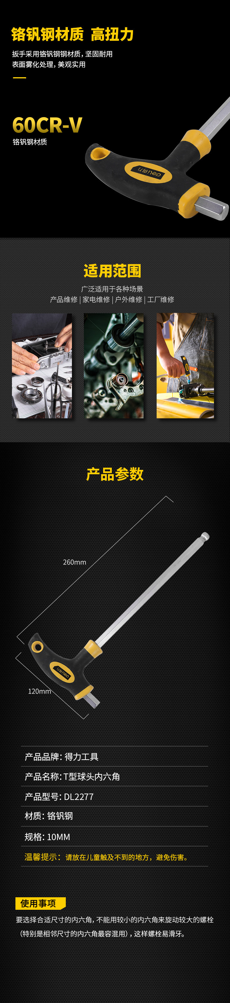 得力 Внутренняя гексагональная рана Т-образная сингл-нож. Плоская головка, плоская головка, шестисторонняя гексагональная угловая рана 60cr-vt