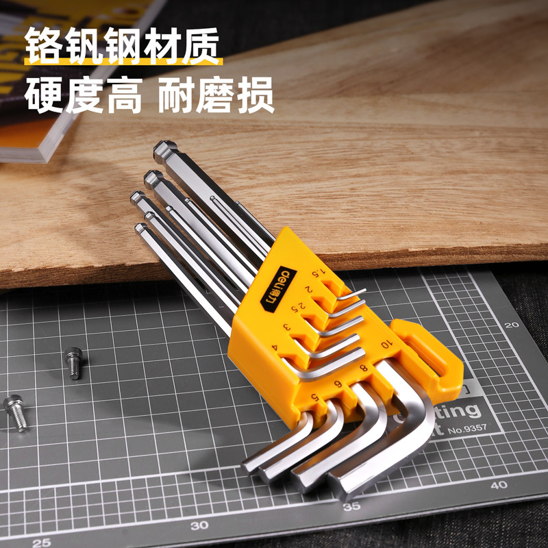 得力 Шестиугольный гаечный ключ, универсальный комплект, шаровая головка, отвертка, 9 шт
