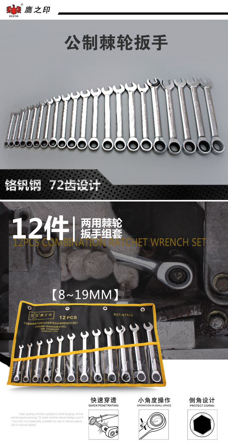 Металлический гаечный ключ, перчатки, комплект, 12 шт, 19mm