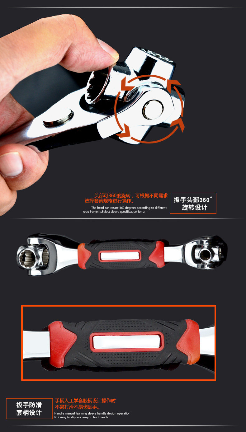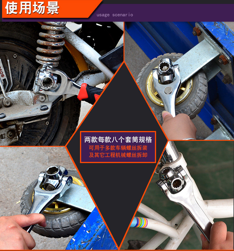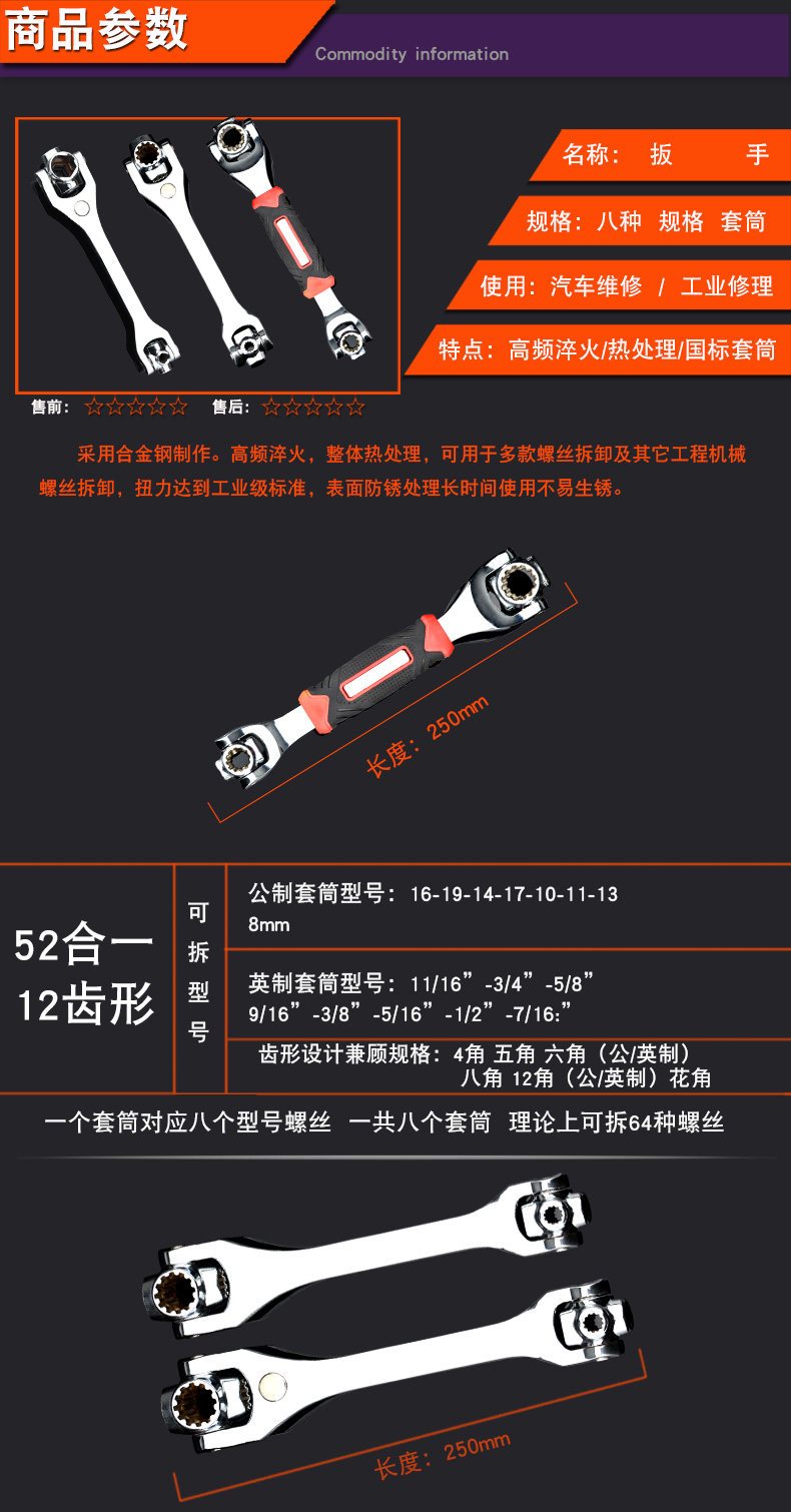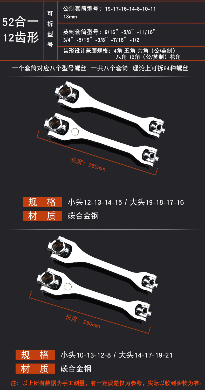 沭工 Универсальный гаечный ключ, шестиугольные накладки на углы, комплект