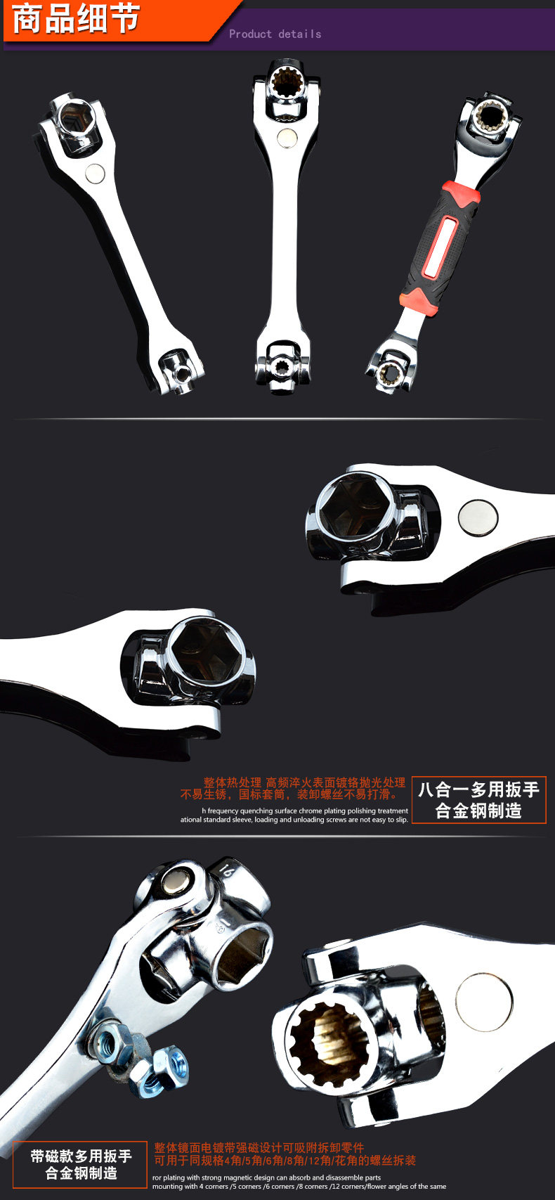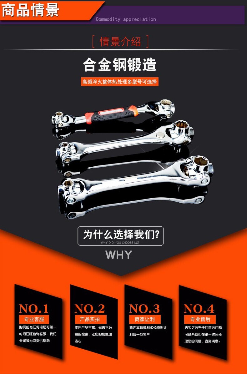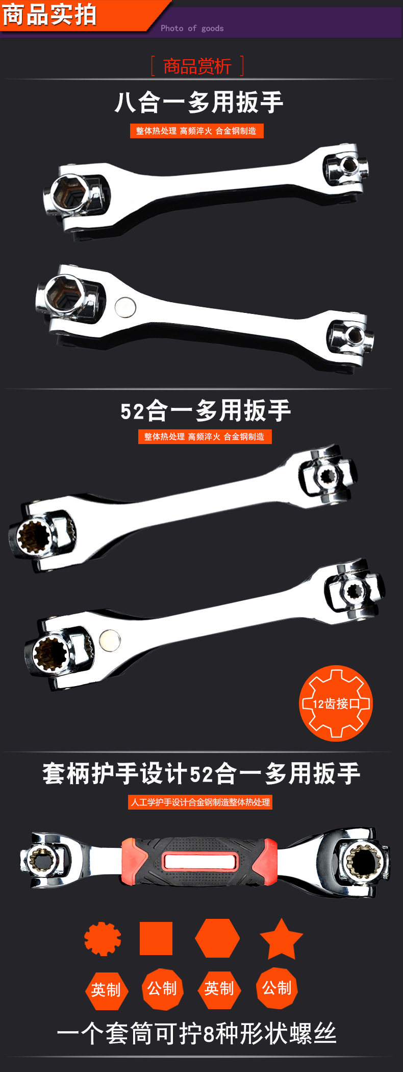 沭工 Универсальный гаечный ключ, шестиугольные накладки на углы, комплект