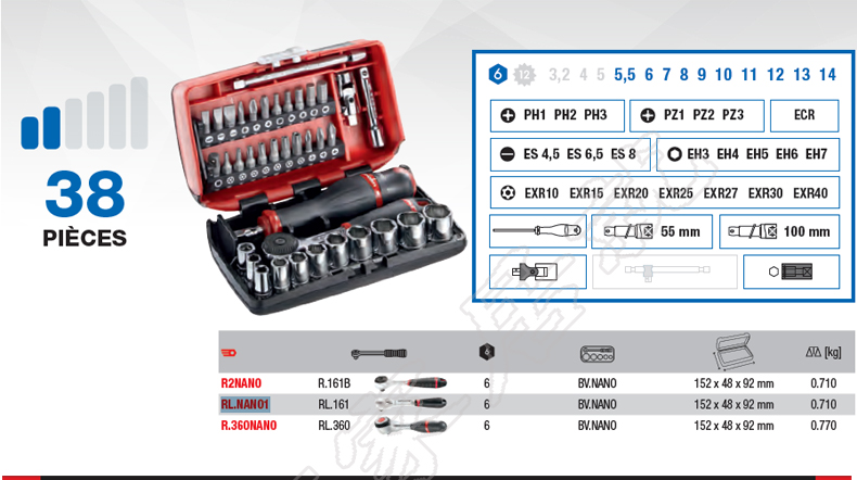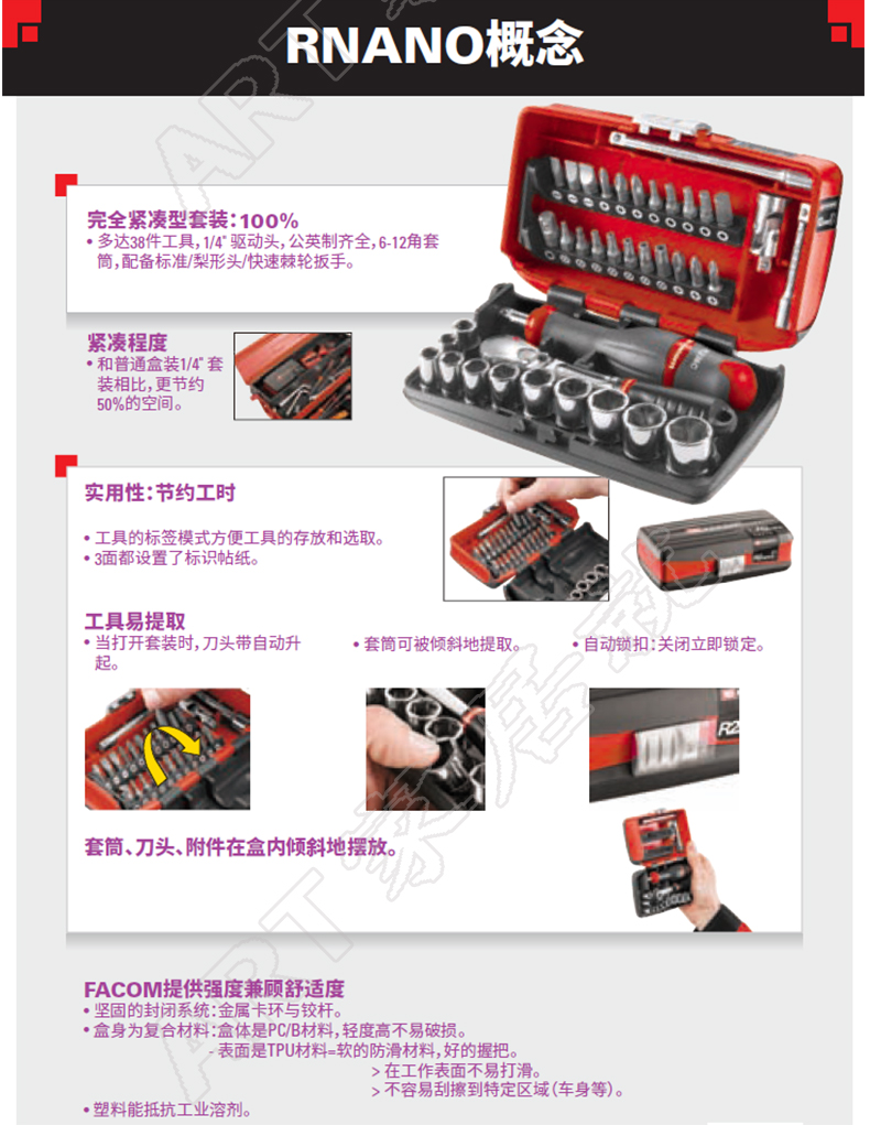 Франция FACOM 38 частей метрического храпового храпового сбора быстрого винтовка Quick Repair Set 1/4 '' rl.nano1