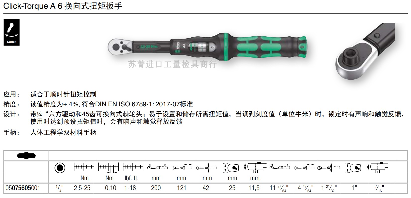 Немецкий крутящий моментный ключ Wera Vera 1/4 партия колючи