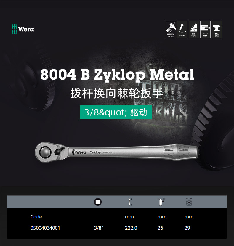 - 8004 B TALC, чтобы переключиться на колючий колесный ключ 3/8 "(05004034001)