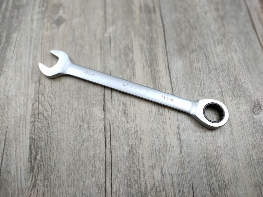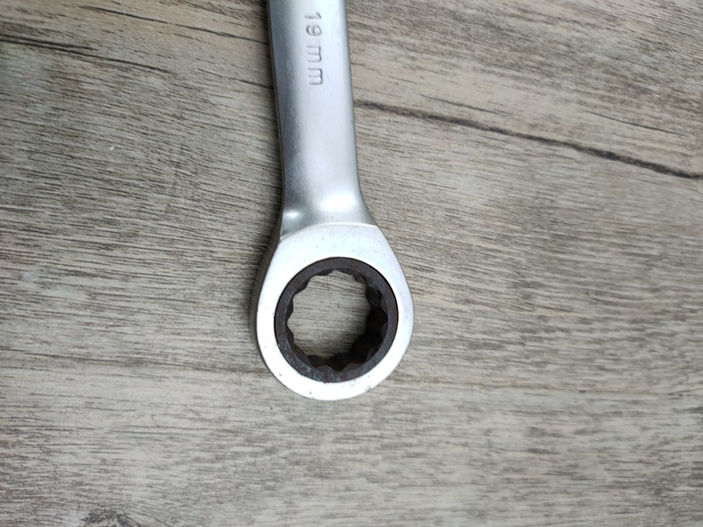 Ключ с храповым механизмом на 19 мм, слегка ржавый и потертый мех.