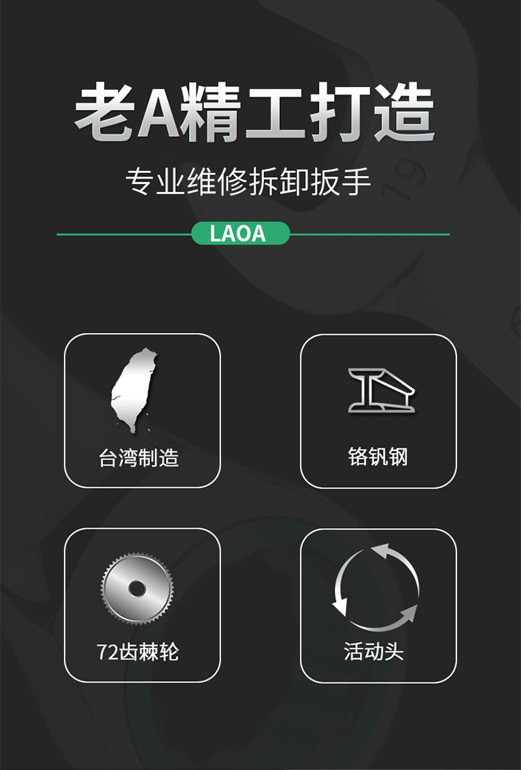 老A Тайваньский гаечный ключ с подвижной головкой и храповым механизмом, гаечный ключ двойного назначения, открытый быстрый ключ для цветов сливы, легкий трудосберегающий гаечный ключ