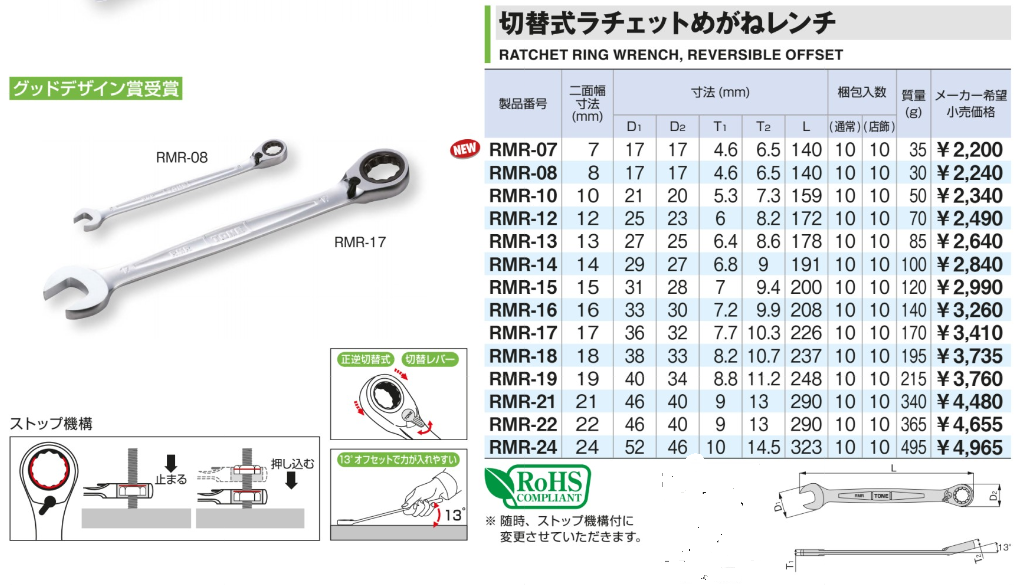 Япония импортированная маота Tone Thone Двух -колесо сливы двойное открытие гаечного ключа Fast Wrench Rench Series