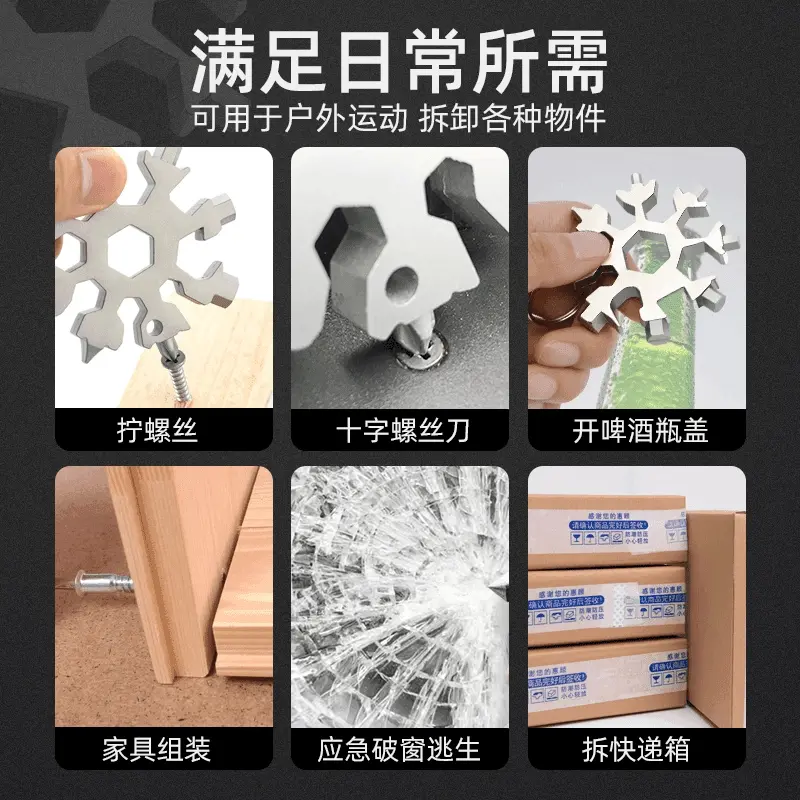 Универсальный гаечный ключ из нержавеющей стали, шестиугольный портативный брелок, со снежинками