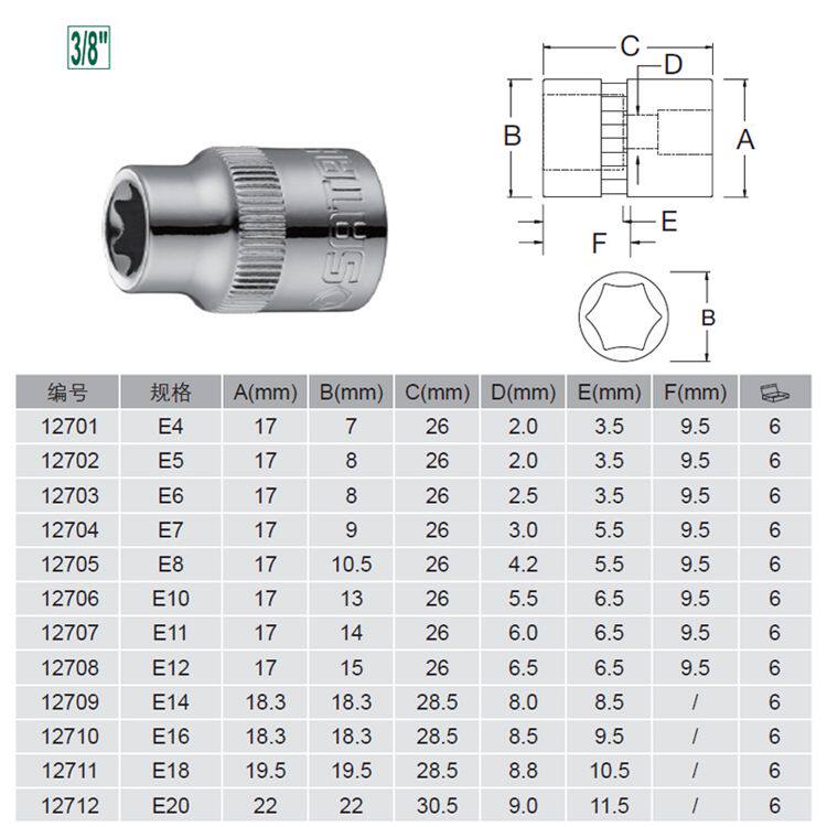 Shida Tool 10mm Series 3/8 Flying 6 -Corporal Flower Holding Внутренний набор шестигранников 12701