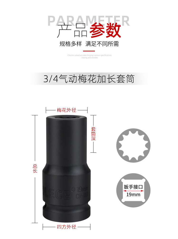 Люксовый длинный электрический гаечный ключ, набор инструментов, 19mm