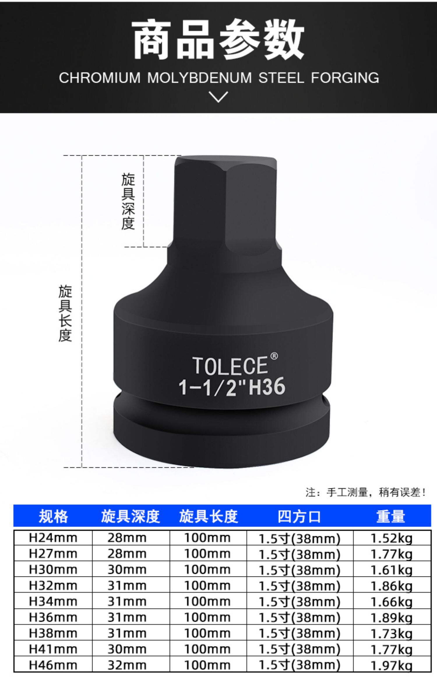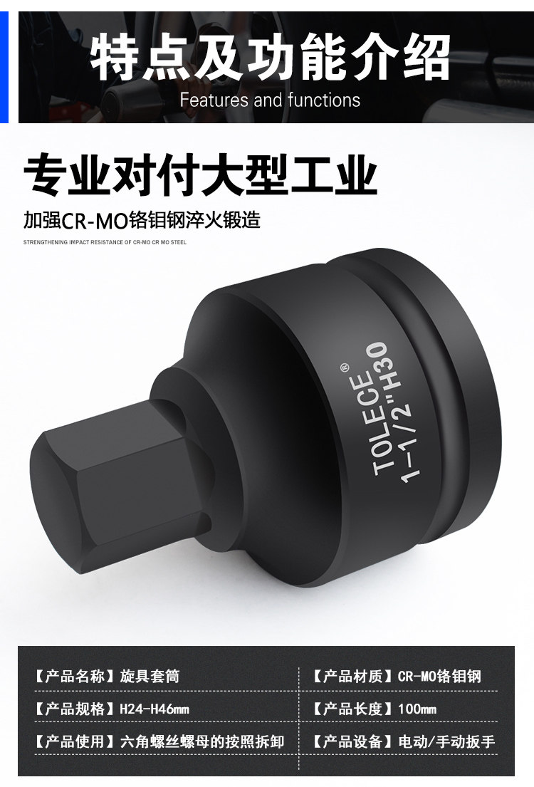 Люксовый шестиугольный гидравлический гаечный ключ, 1.5 дюймов, 38mm, 1 дюймов