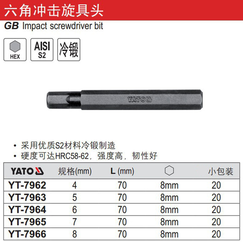 - YT-7962 8 мм Hex4x70mm 20