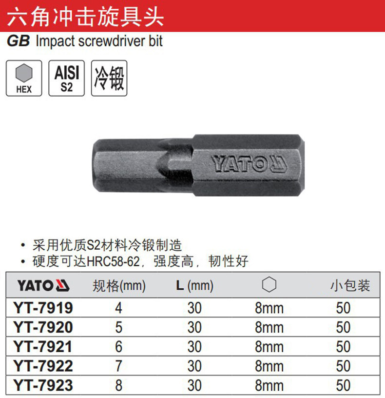- YT-7919 8mm hex4x30mm 50
