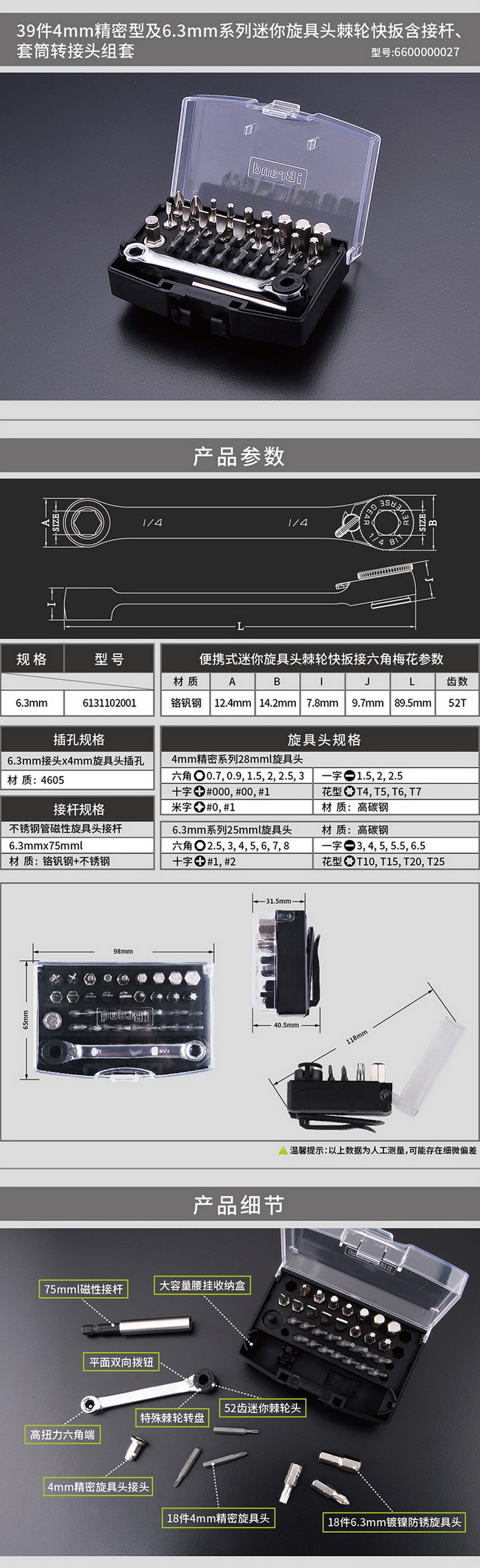 | Цвет: | 1/4 "Точная мини -ротация и быстрое притяжение 39 наборов |