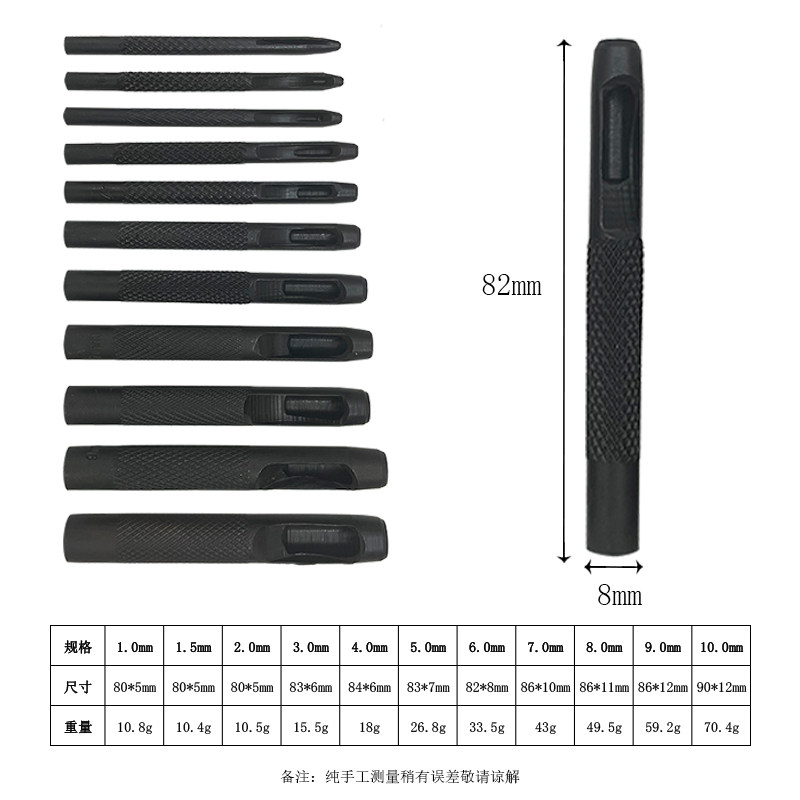 Кожаные инструменты отверстия перфолнек -удары удары отверстия круглое перенос немецкий удар Yuan Punch Black Silver Punch