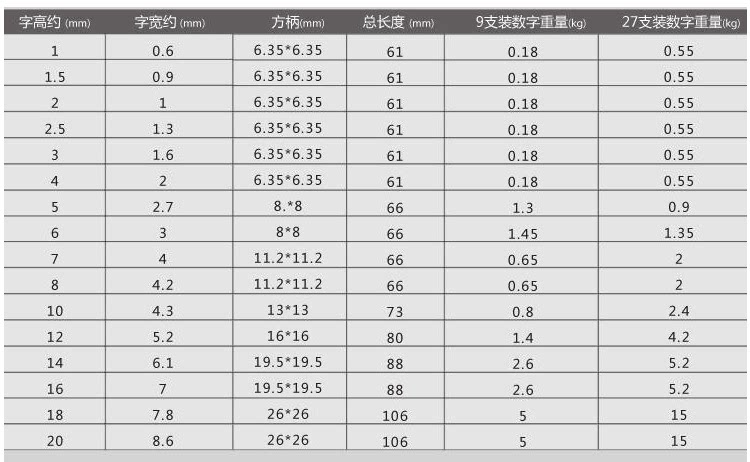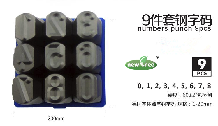 Цифровая стальная печать 0-8, в общей сложности 9, 6 и 9 универсальных, шрифты ясные и яркие, а удары ясные и мощные.