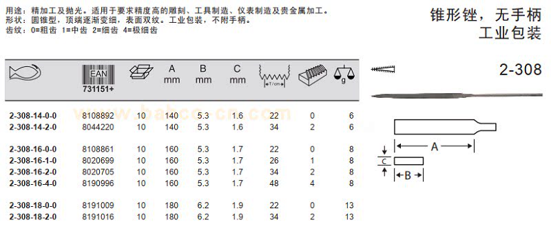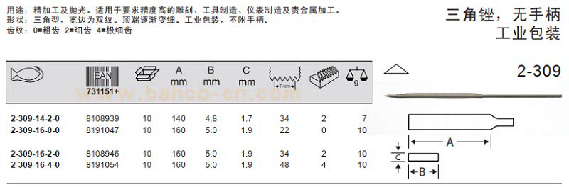 - 2-309-16-2-0 Треугольник 锉 тонкие зубы