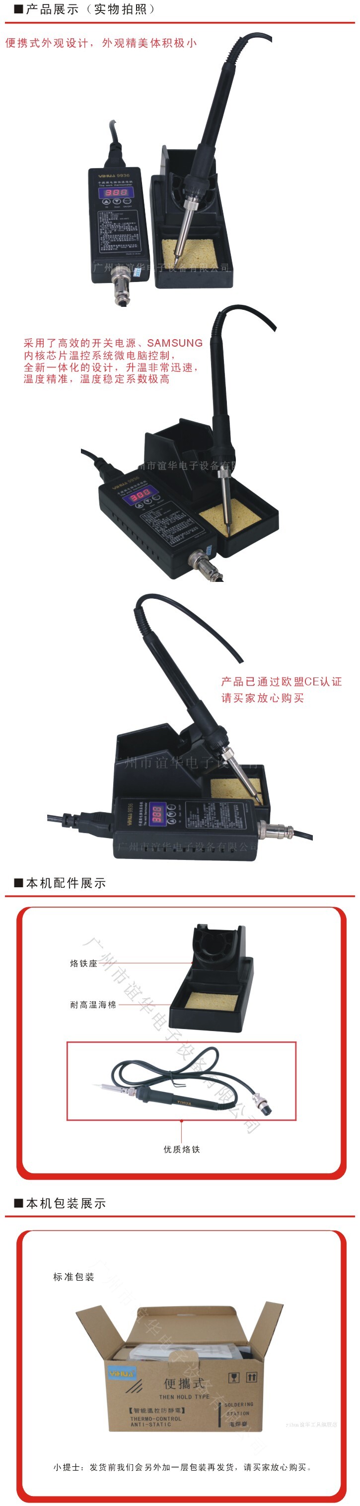 *Интегрированная конструкция системы питания с высокой эффективностью и системы управления питанием, микро -компутатора Samsung, нагрев очень быстрый, всего 15 с 0 ℃ до 300 ℃.