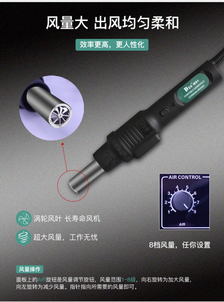 Германия импортированная платформа для сварки с горячим воздухом Двух -в одну постоянную температуру Электрическое железо 90 Вт Регулируемая температура сварки горячего воздуха 1600 Вт