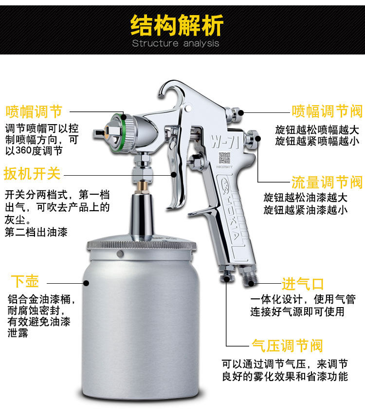 Инструмент Германия распылитель спрей-аэрозольный пистолет мебель W-71 Пневматическая краска для краски.