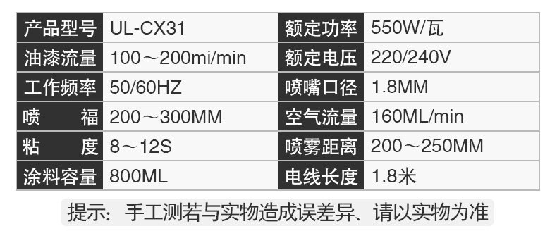 - Рекомендуется 850 Вт Ultimate CX35 Электрический пистолет краски [1,0/1,8/2,5 мм] 3 сопла + бесплатный горшок