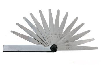 (2)Вставьте линейку штекеры в измеренный зазор и вытяните линейку назад и вперед, чтобы почувствовать небольшое сопротивление, указывая на то, что значение зазора близка к значению, отмеченному на сегиарбии; если сопротивление слишком большое или слишком мало, это означает, что Значение разрыва меньше или меньше, чем или меньше. Значение, отмеченное на вилке.