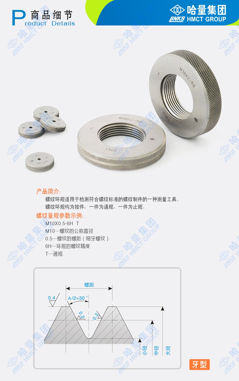 Точность стандарта составляет 6H (сегрегированные правила) 6G (кольцевые правила) Кроме того, (сегрегатная точность 3H 4H 5H 7H 8H) (кольцо