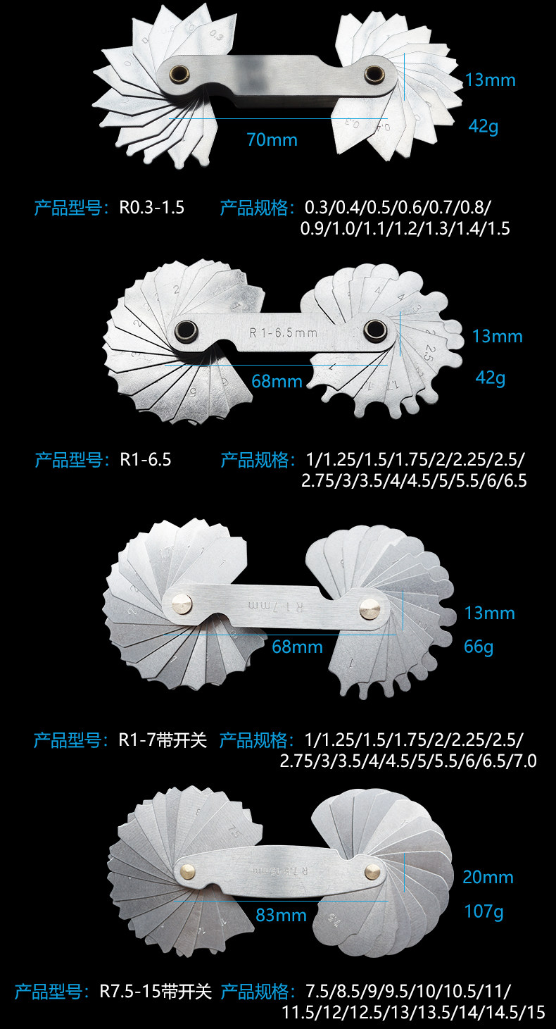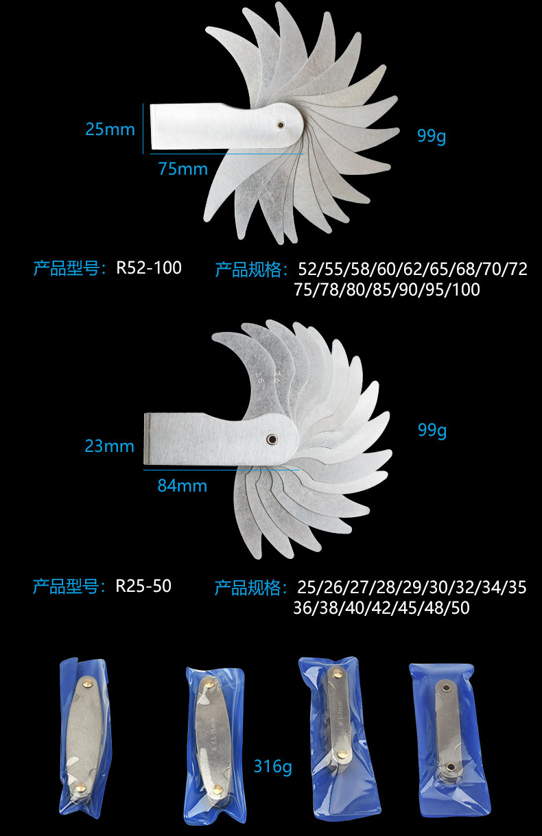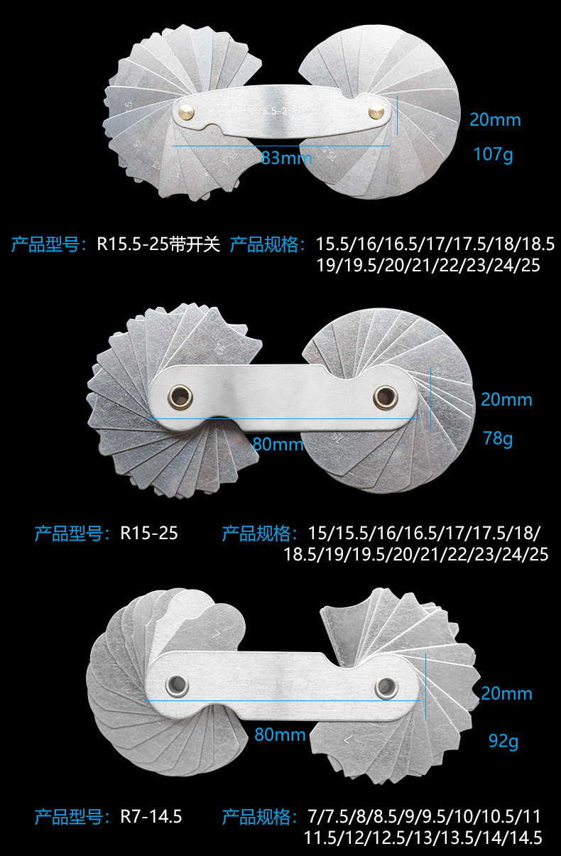 Правила радиуса нержавеющей стали/правила модели R/Radian 0,3-1,5 R1-7 R7,5-15 R15.5-25 R Правила