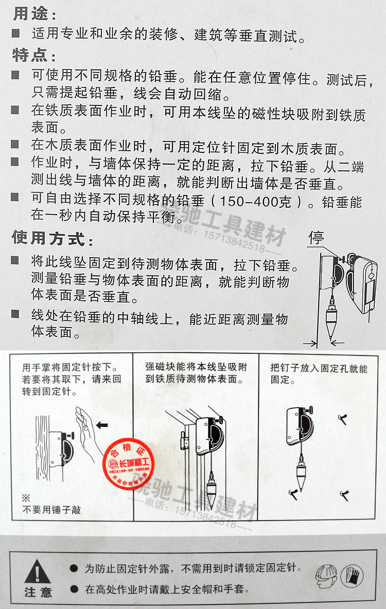 长城精工 Магнитная линейная раковина 3/6 м/8 м подвесная линия молоток молоток молоток деревообработок подвесной подвесной молоток линия раковина магнитная линия грузила