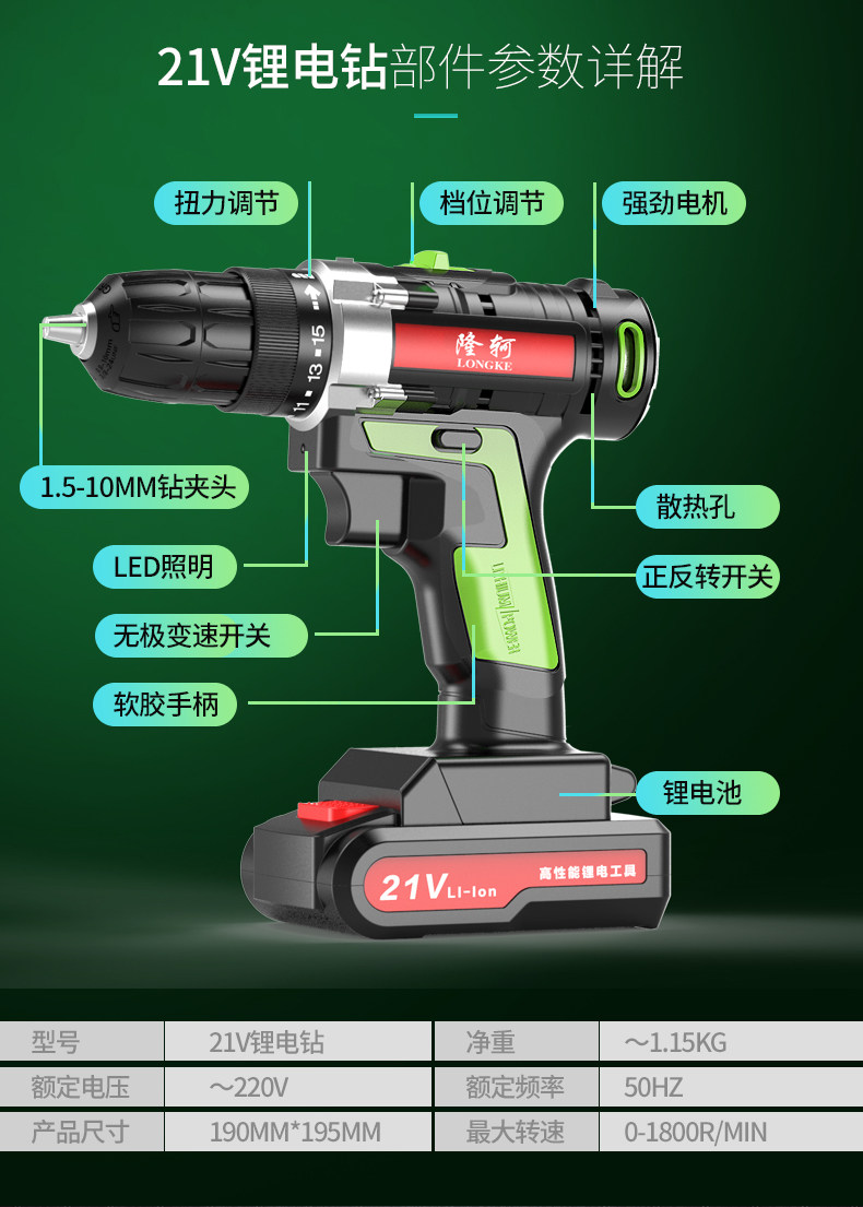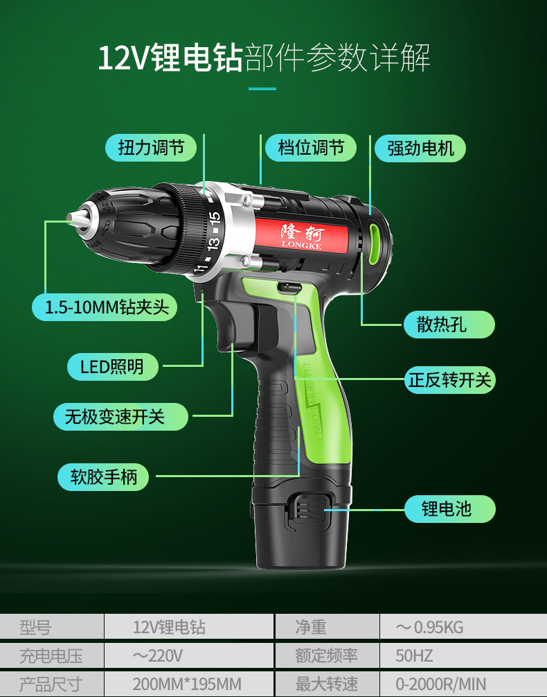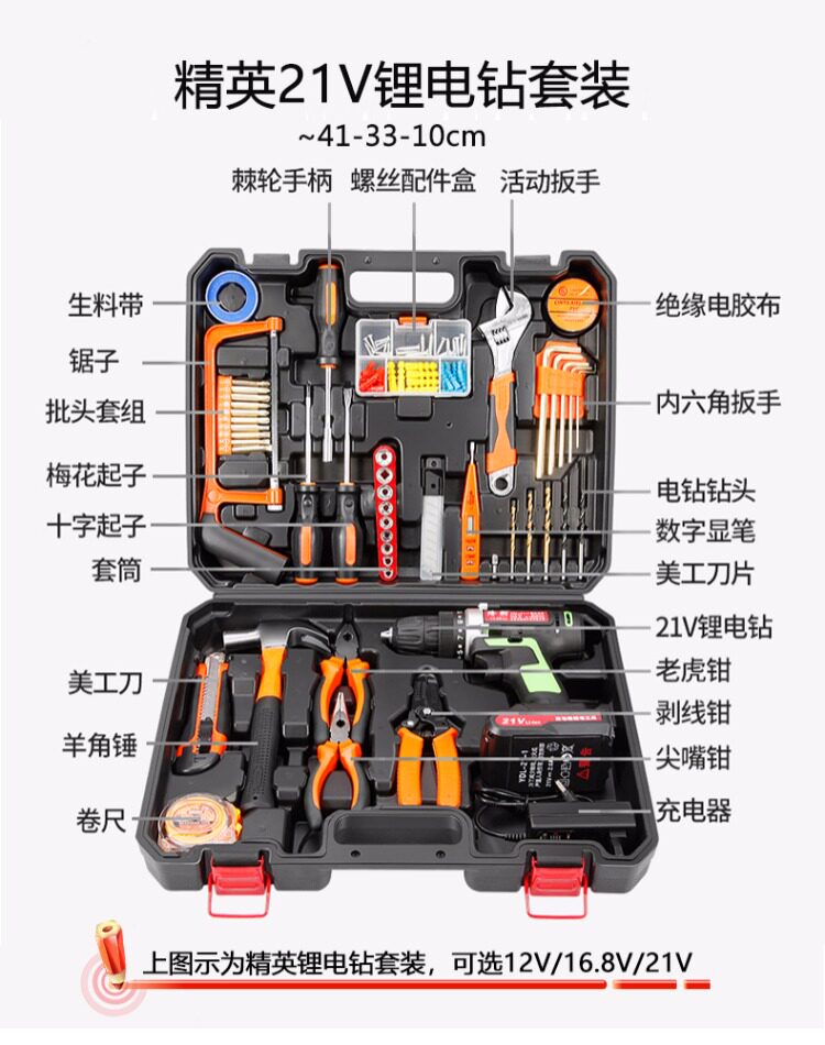 隆轲 Электрическая электродрель, набор инструментов ручной работы, универсальная коробка для ремонта, столярные изделия