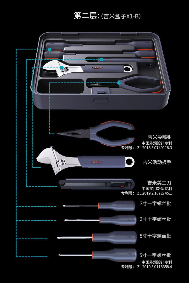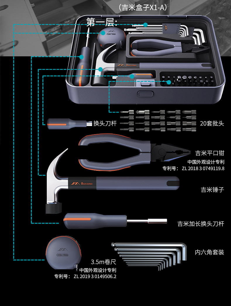 吉米家居 Универсальный набор инструментов, коробка для ремонта, полный комплект