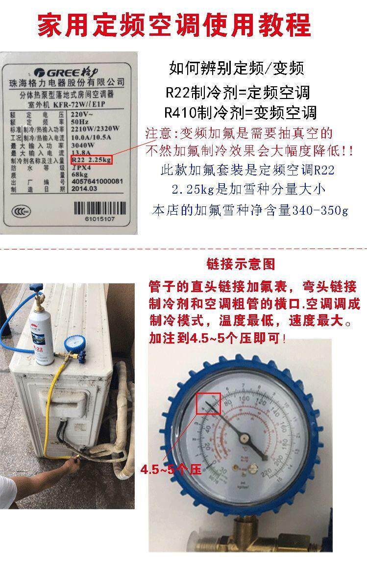 Флуорий на домохозяйственном воздухе плюс фторин плюс R134R410 Watch Snow Holrigrator Комплект Car Conditioning R22 холодильник R22