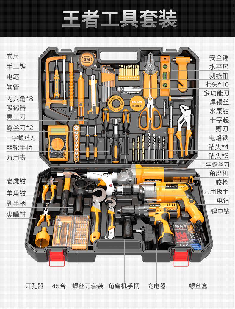 Комплект, универсальная электродрель, столярные изделия, набор инструментов для ремонта