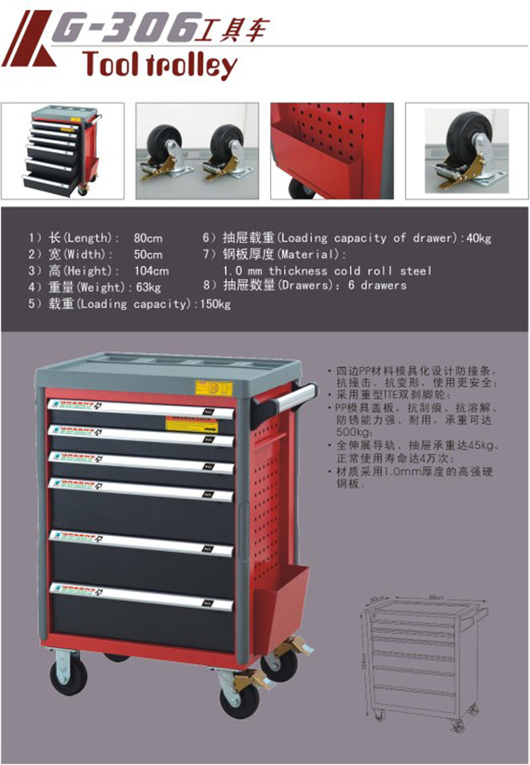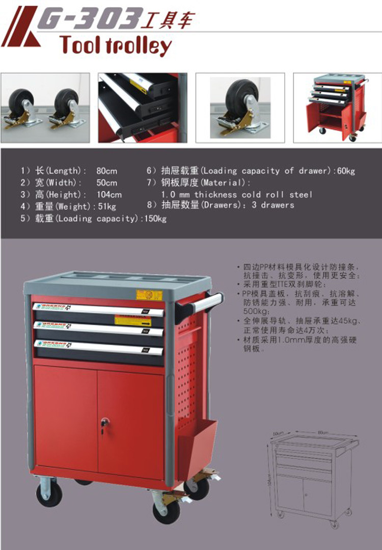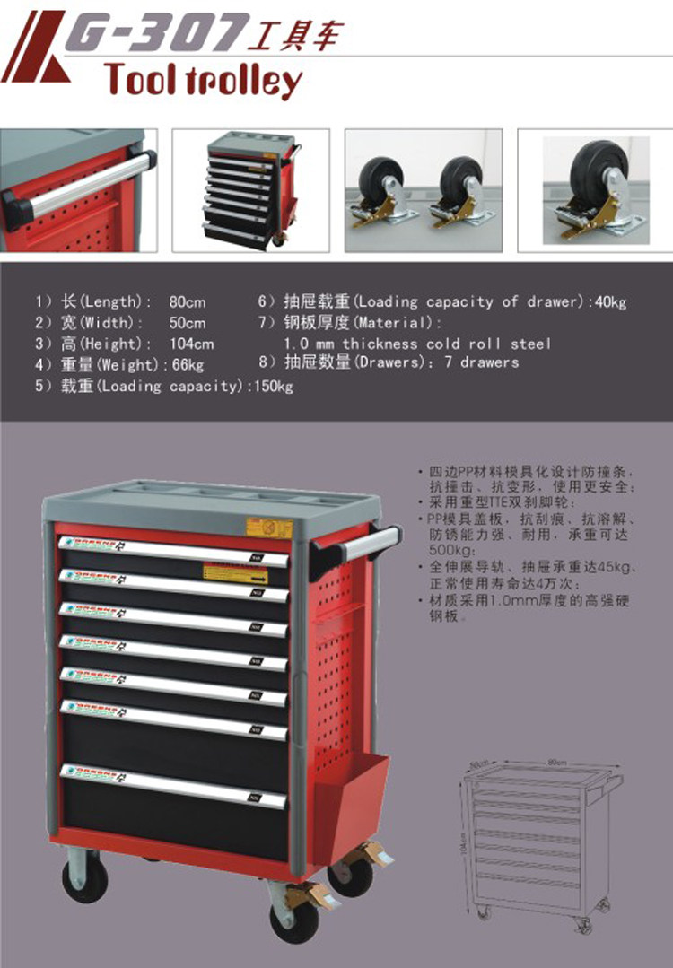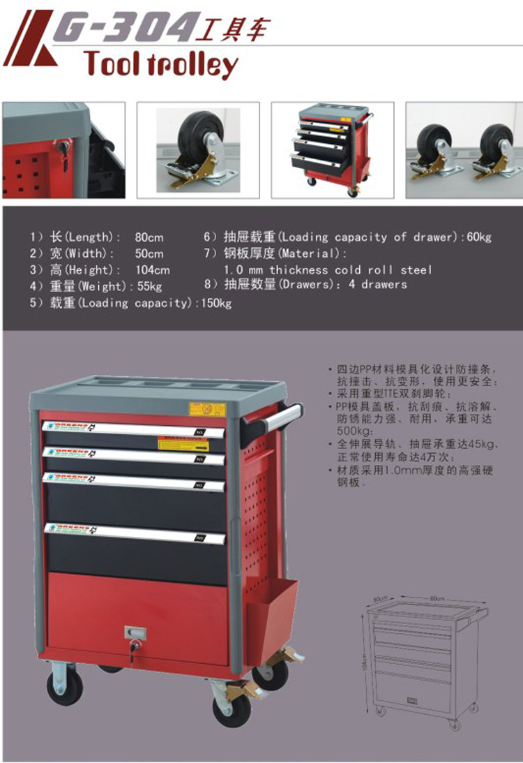 Фабрика прямая продажа Greens 4 Ящик G-304 Инструментальный автомобиль 80*50*104 см инструмент инструмента