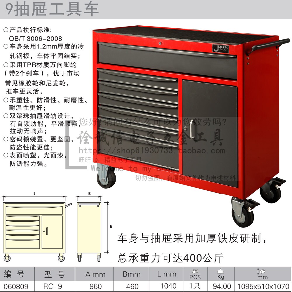 Jieke Tool Car Многофункциональный инструмент инструмент инструмент инструментальный шкаф трехслойный ящик для троллейбуса автомобиль RC-3 4 6 7 9